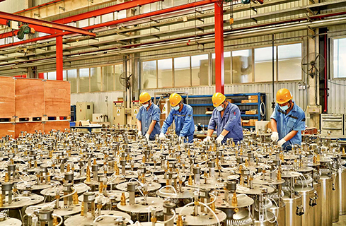 在天海工業(yè)明暉車間里,一派繁忙景象,工人師傅們正在對液氧呼吸器的零部件進(jìn)行組裝。據(jù)介紹,此呼吸器采用高真空多層絕熱設(shè)計(jì),與常規(guī)工業(yè)液氧氣瓶相比,具有更好的絕熱性能,液氧靜態(tài)存儲時(shí)間可達(dá)到30天以上。